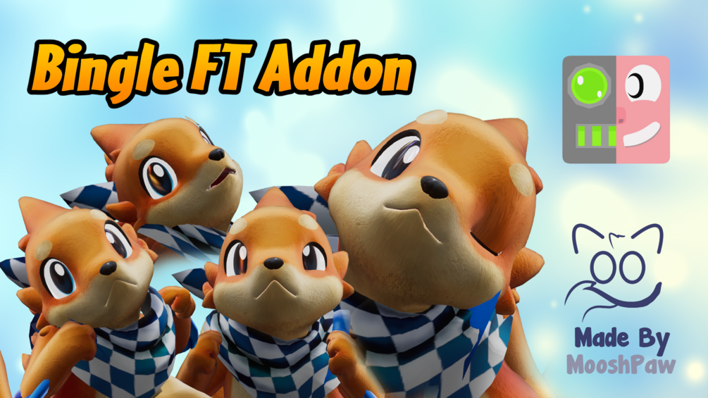 This is an Addon for the Bingle avatar by SpeedBuiz sold HERE. This addon does not include any of the original files and you MUST have rightfully purchased the original avatar. This addon will add most of the Unified Expressions Blendshapes used by VRCFT v5 or newer to the original FBX.